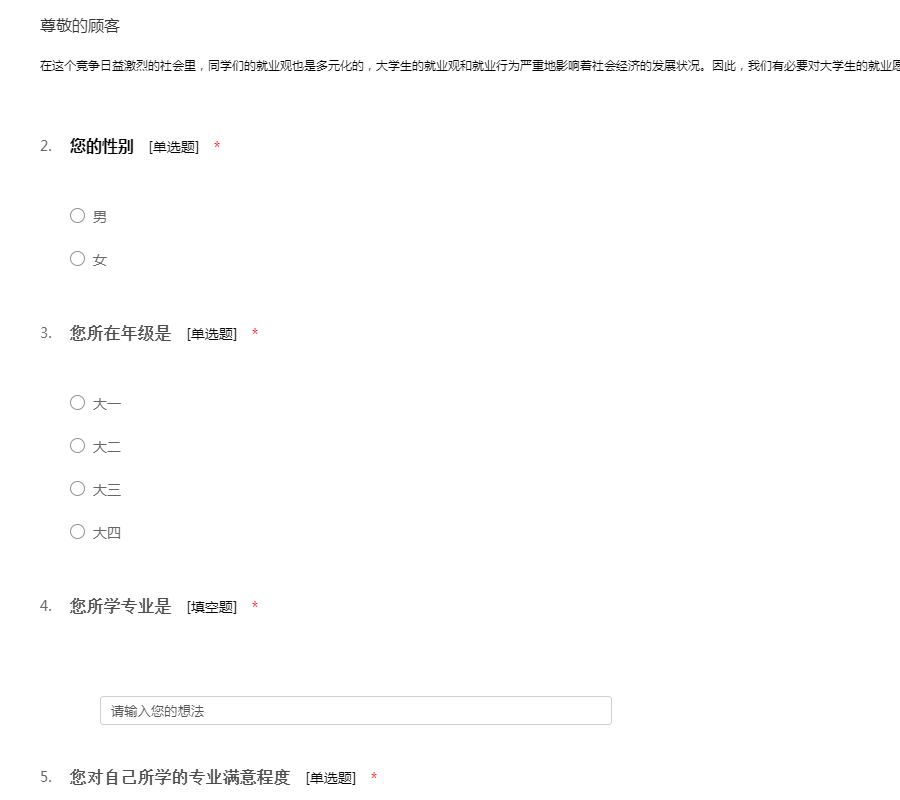 在这个竞争日益激烈的社会里,同学们的就业观也是多元化的,大学生的就业观和就业行为严重地影响着社会经济的发展状况。因此,我们有必要对大学生的就业愿景进行一次调查。感谢大家帮忙填写