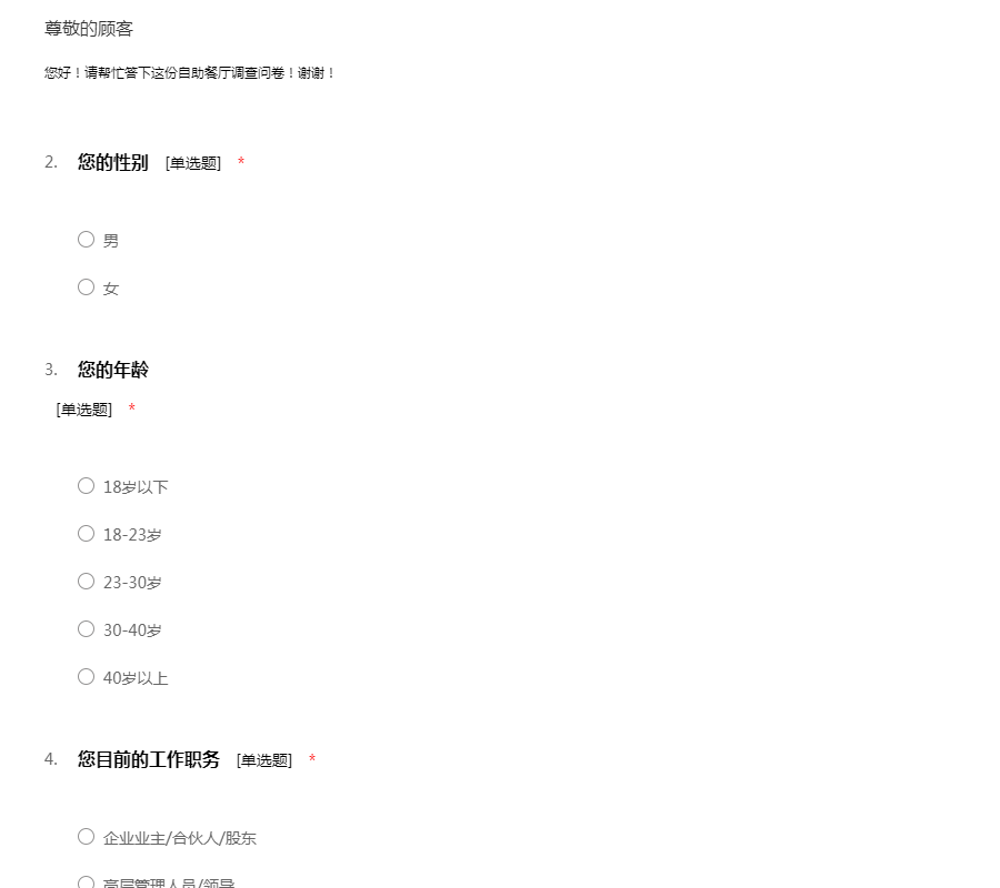 您好!请帮忙答下这份自助餐厅调查问卷!谢谢!