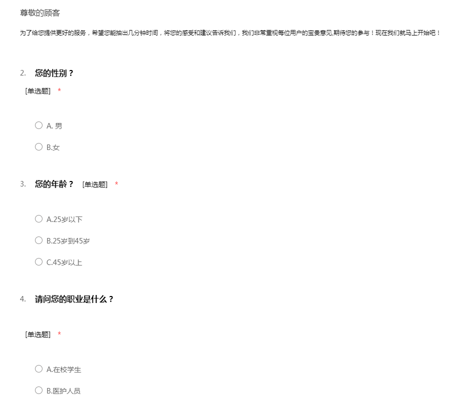 为了给您提供更好的服务,希望您能抽出几分钟时间,将您的感受和建议告诉我们,我们非常重视每位用户的宝贵意见,期待您的参与!现在我们就马上开始吧!