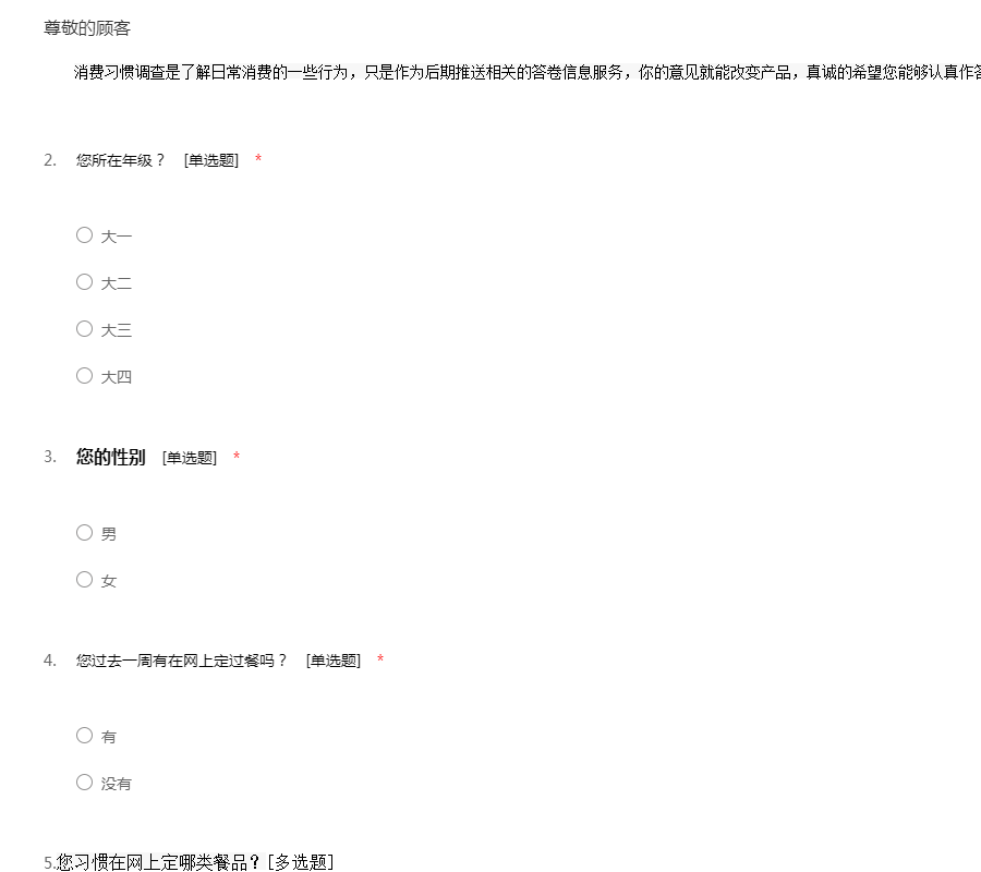 大学生网上订餐消费调查问卷