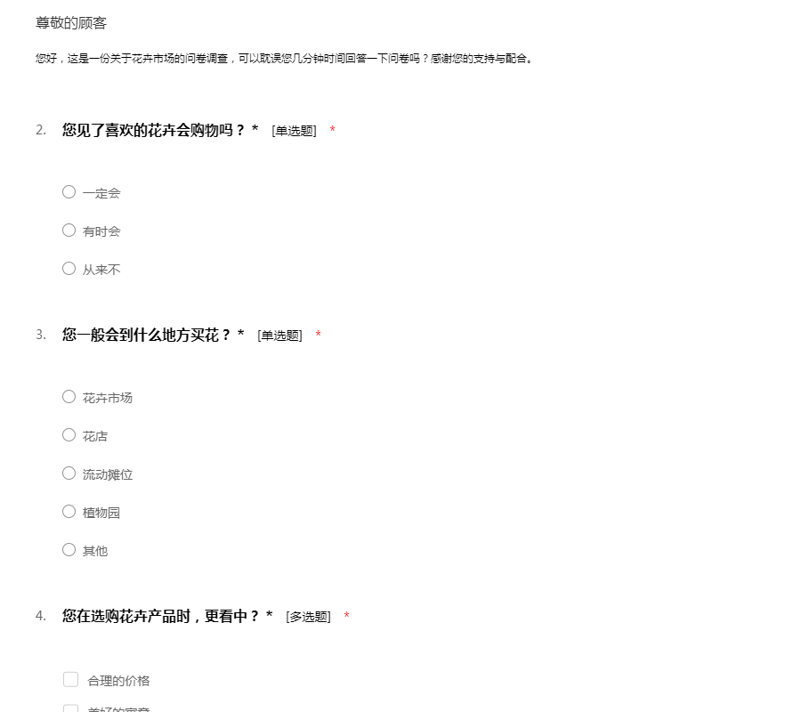 您好,这是一份关于花卉市场的问卷调查,可以耽误您几分钟时间回答一下问卷吗?感谢您的支持与配合。