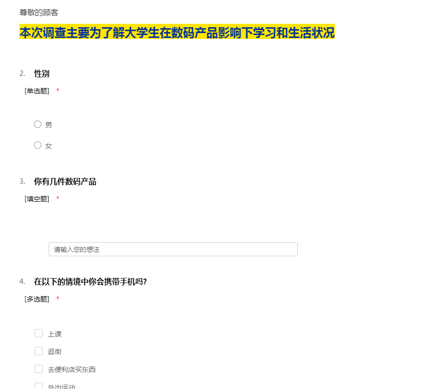 本次调查主要为了解大学生在数码产品影响下学习和生活状况