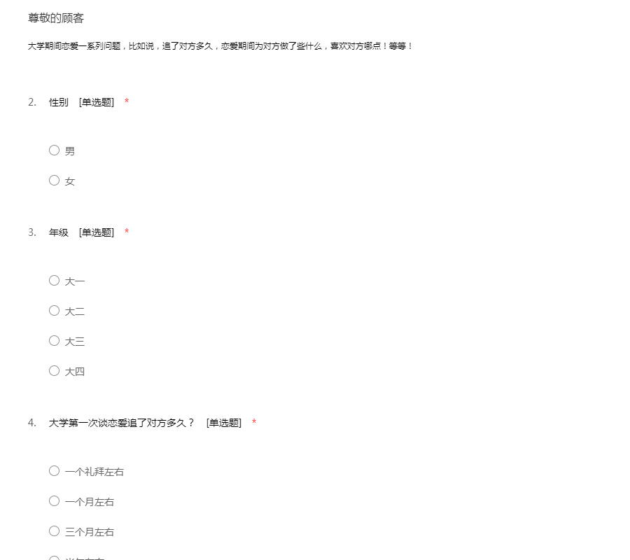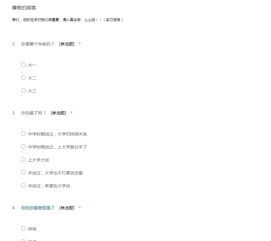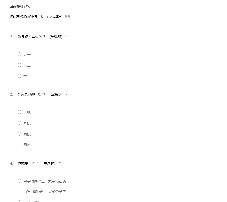 大学期间恋爱一系列问题,比如说,追了对方多久,恋爱期间为对方做了些什么,喜欢对方哪点!等等!