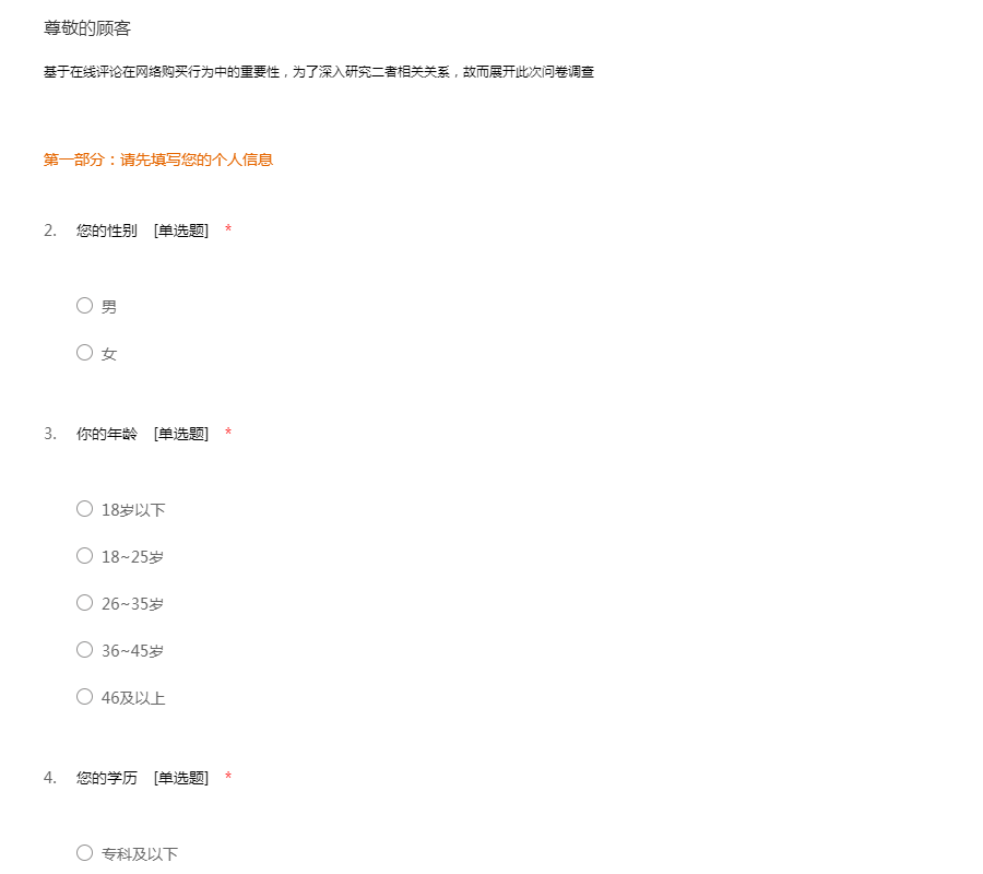 基于在线评论在网络购买行为中的重要性,为了深入研究二者相关关系,故而展开此次问卷调查