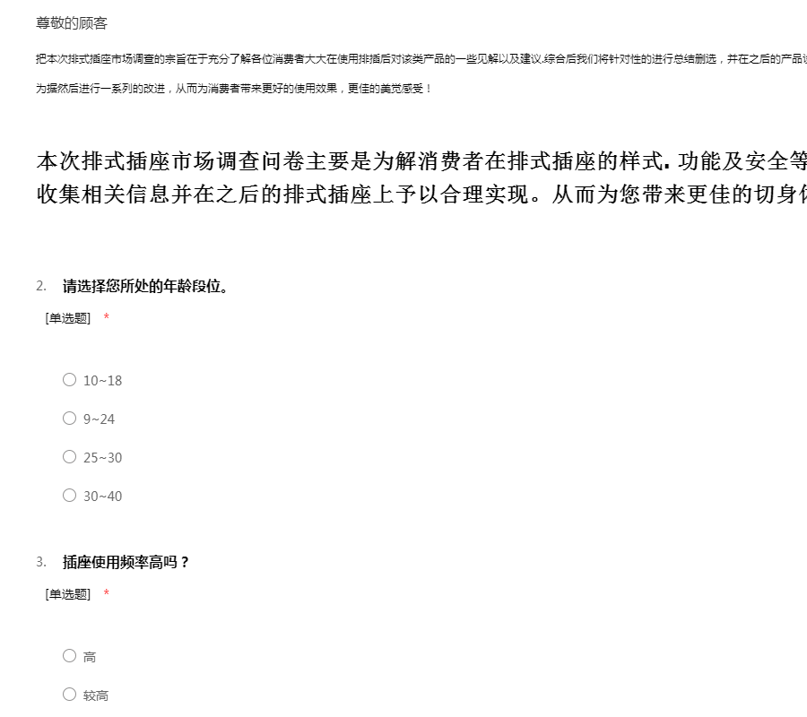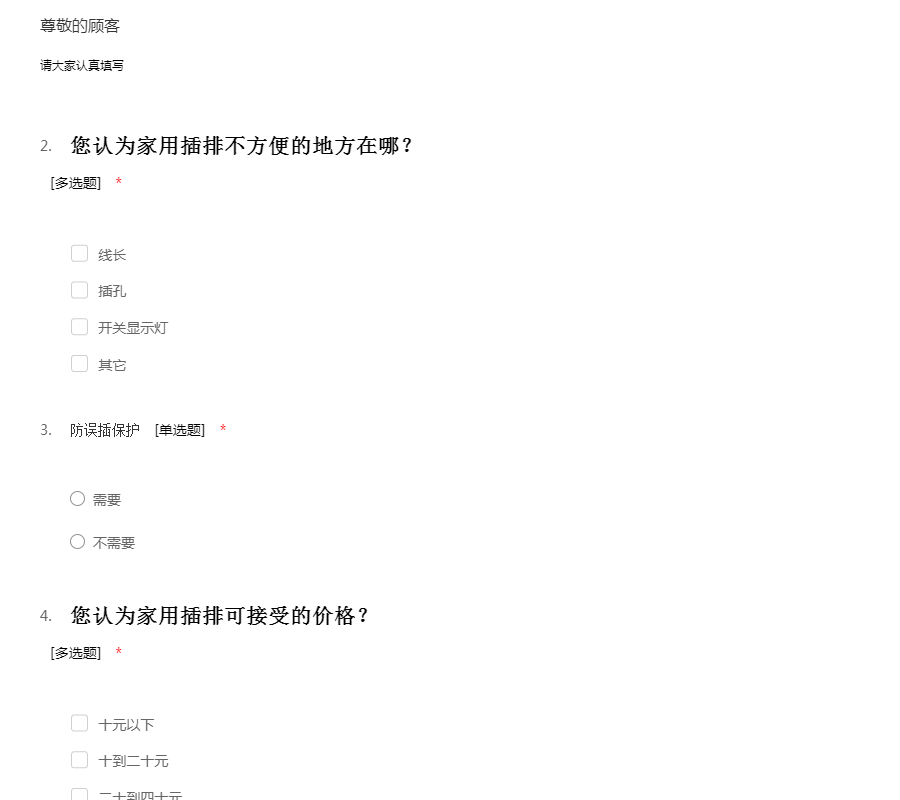 把本次排式插座市场调查的宗旨在于充分了解各位消费者大大在使用排插后对该类产品的一些见解以及建议.综合后我们将针对性的进行总结删选,并在之后的产品设计中着重考虑相关信息.且将在设计产品中引以为据然后进行一系列的改进,从而为消费者带来更好的使用效果,更佳的美觉感受!