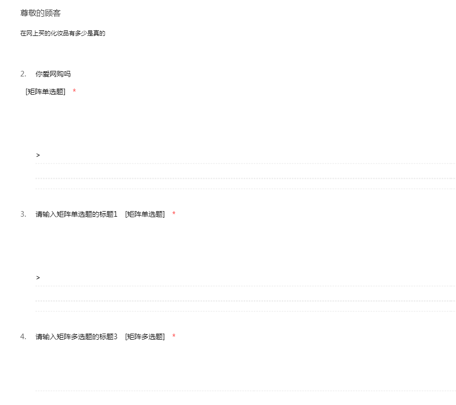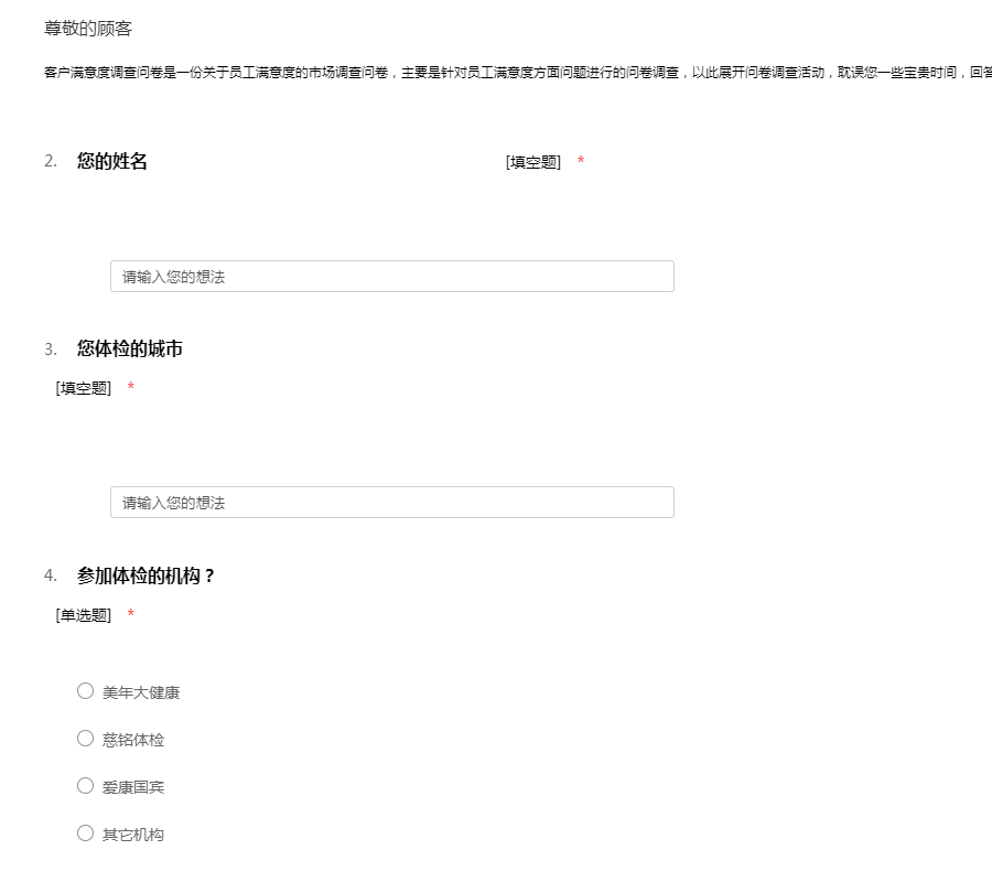 亲爱的员工,您好!为了了解公司的管理、工作环境、福利待遇等各方面对您的工作影响,以便公司能针对出现的问题和不足进行整改。本问卷无须填写姓名,所以请放心的如实填写。感谢您的配合!