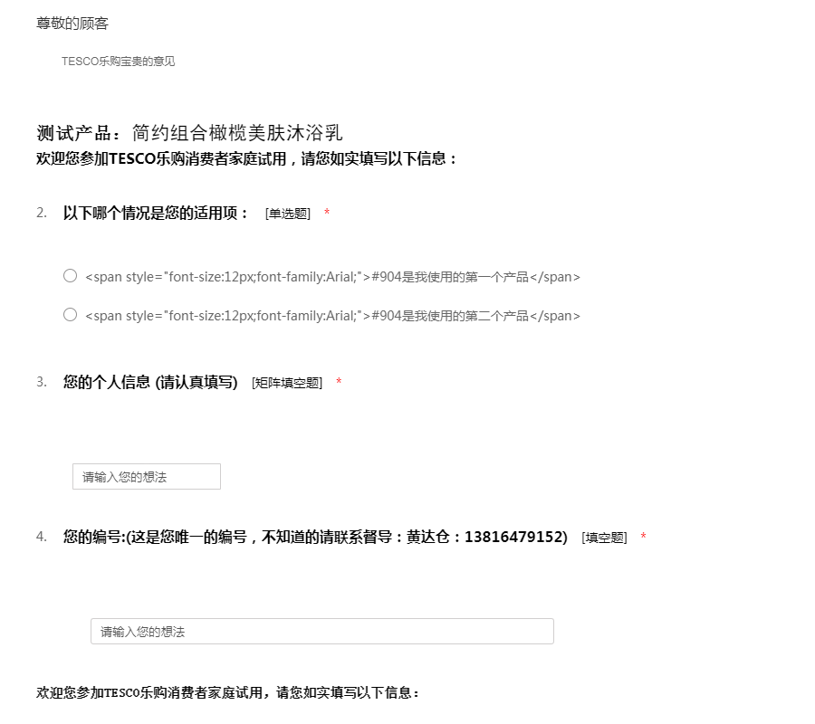 TESCO乐购简约组合橄榄美肤沐浴乳试用调查问卷#637