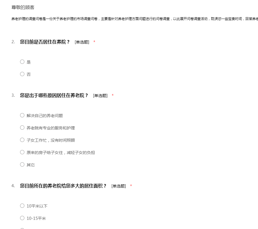 养老护理的调查问卷是一份关于养老护理的市场调查问卷,主要是针对养老护理方面问题进行的问卷调查,以此展开问卷调查活动,耽误您一些宝贵时间,回答养老护理的调查问卷,谢谢您的合作。