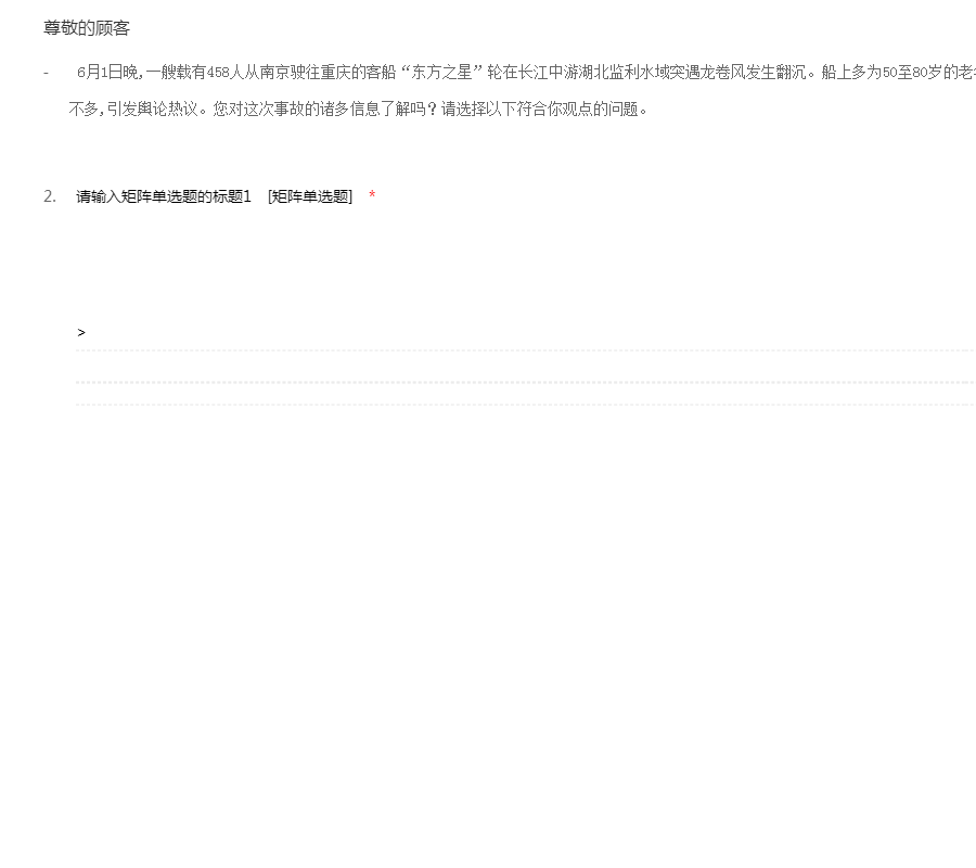 - 6月1日晚,一艘载有458人从南京驶往重庆的客船“东方之星”轮在长江中游湖北监利水域突遇龙卷风发生翻沉。船上多为50至80岁的老年旅游团成员。救援难度非常大,获救者不多,引发舆论热议。您对这次事故的诸多信息了解吗?请选择以下符合你观点的问题。