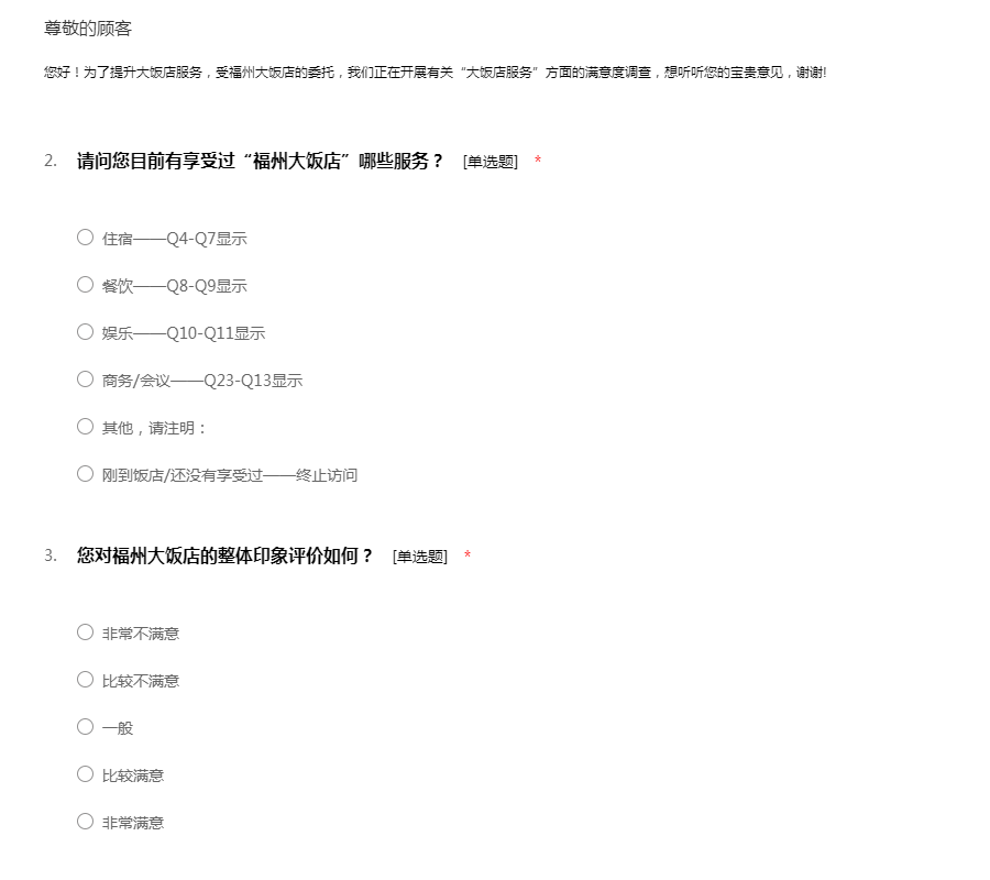 您好!为了提升大饭店服务,受福州大饭店的委托,我们正在开展有关“大饭店服务”方面的满意度调查,想听听您的宝贵意见,谢谢!