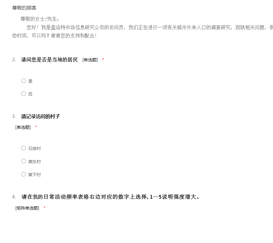 尊敬的女士/先生: 您好!我是盖洛特市场信息研究公司的访问员,我们正在进行一项有关城市外来人口的调查研究,现就相关问题,很想听一听您的宝贵意见,耽搁您一些时间,可以吗?谢谢您的支持和配合!