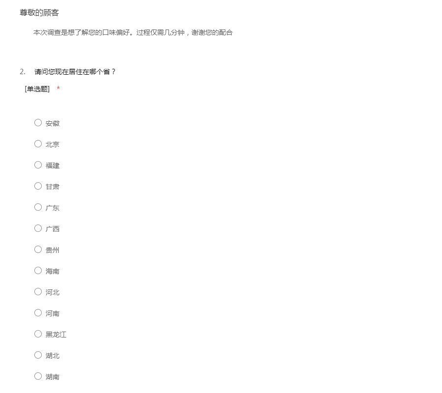 本次调查是想了解您的口味偏好。过程仅需几分钟,谢谢您的配合