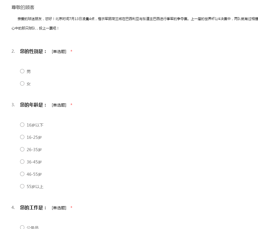 2014年世界杯季军争霸赛巴西VS荷兰问卷调查
