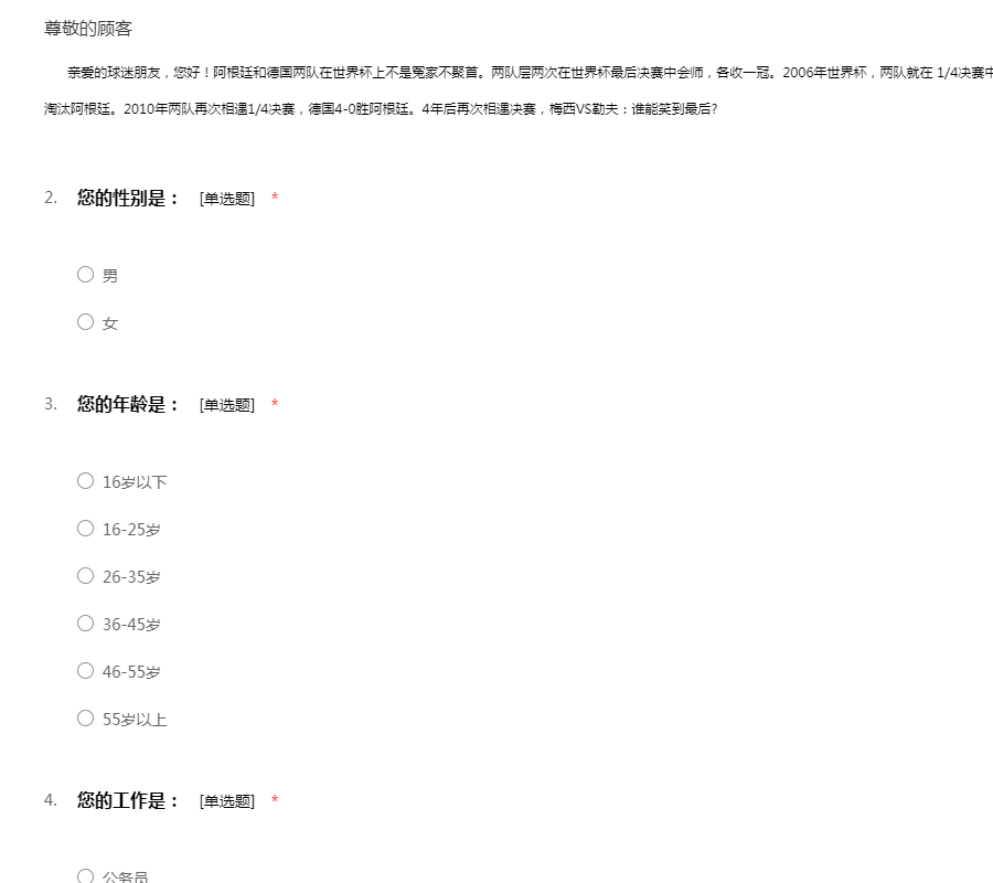 2014年世界杯冠军争霸赛德国VS阿根廷调查问卷