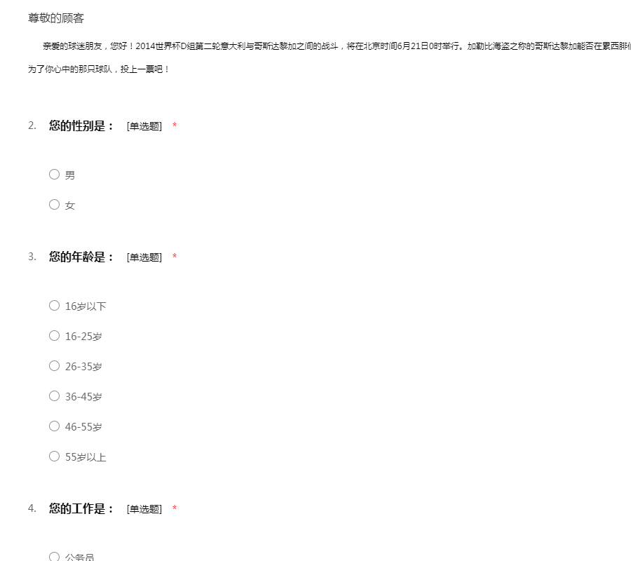 2014年世界杯意大利VS哥斯达黎加调查问卷
