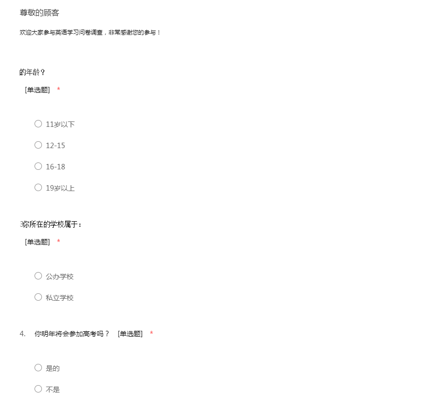 欢迎大家参与英语学习问卷调查,非常感谢您的参与!