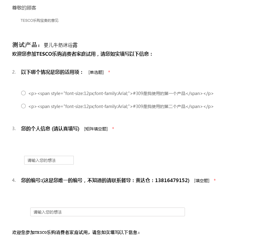TESCO乐购婴儿牛奶沐浴露试用调查问卷#156