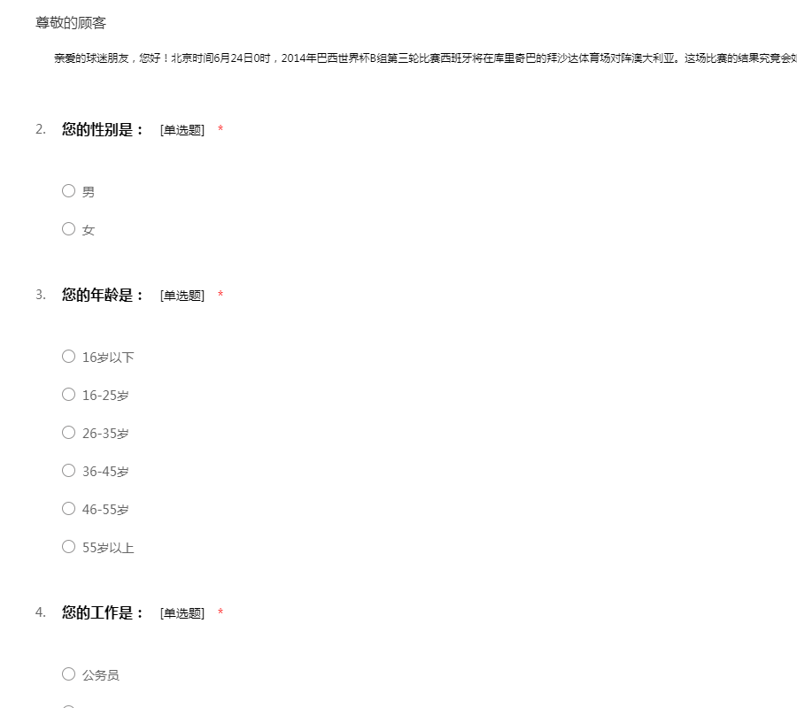 2014年世界杯西班牙VS澳大利亚调查问卷