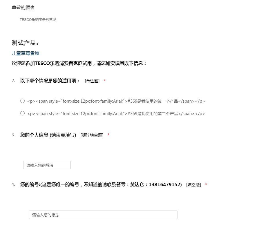 TESCO乐购儿童草莓香波试用调查问卷#369