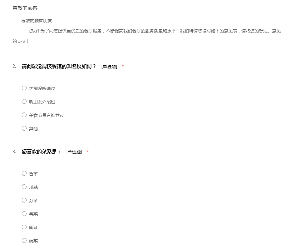 尊敬的顾客朋友: 您好! 为了向您提供更优质的餐厅服务,不断提高我们餐厅的服务质量和水平,我们特请您填写如下的意见表,请将您的想法、意见告诉我们,以便让我们做得更好。感谢您的支持!