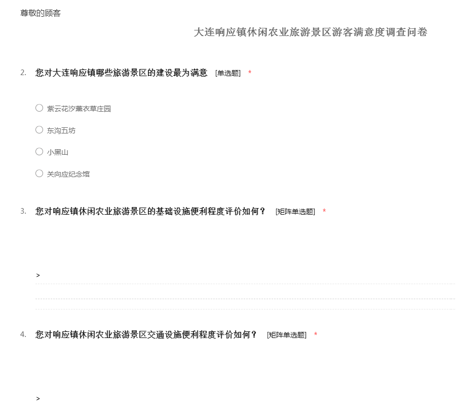 大连响应镇休闲农业旅游景区游客满意度调查问卷