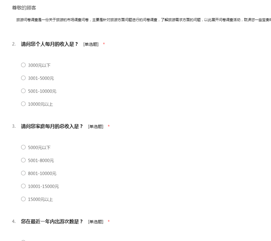 旅游问卷调查是一份关于旅游的市场调查问卷,主要是针对旅游方面问题进行的问卷调查,了解旅游需求方面的问题,以此展开问卷调查活动,耽误您一些宝贵时间,回答旅游问卷调查,谢谢您的合作。