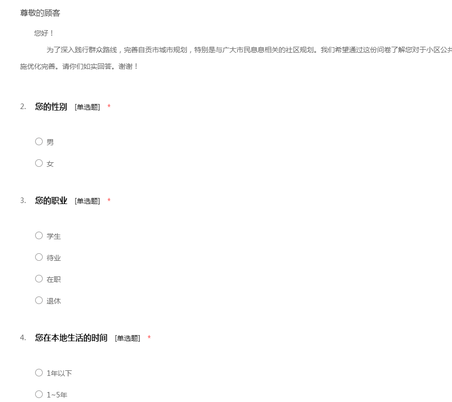 您好! 为了深入践行群众路线,完善自贡市城市规划,特别是与广大市民息息相关的社区规划。我们希望通过这份问卷了解您对于小区公共服务设施的一些看法,以便与进一步对设施优化完善。请你们如实回答。谢谢!