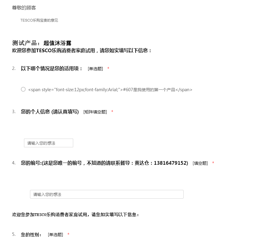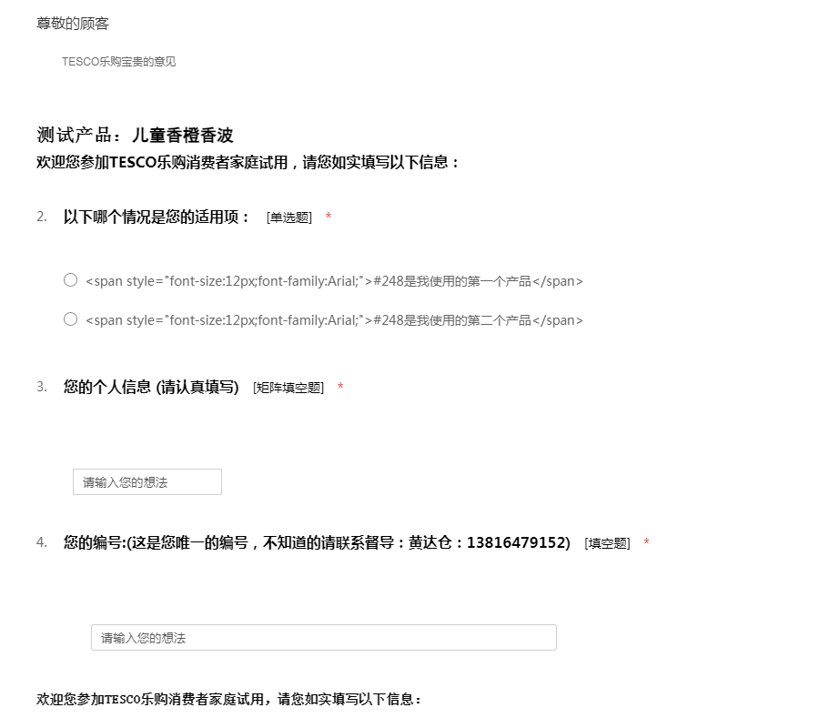 TESCO乐购儿童香橙香波试用调查问卷#135