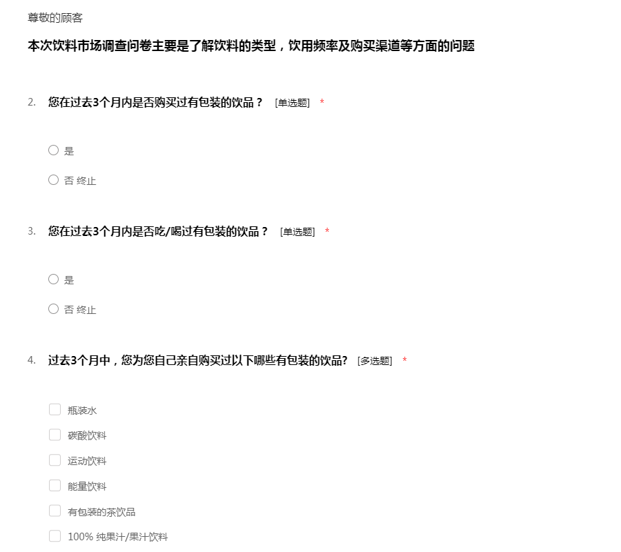 饮料调查问卷
