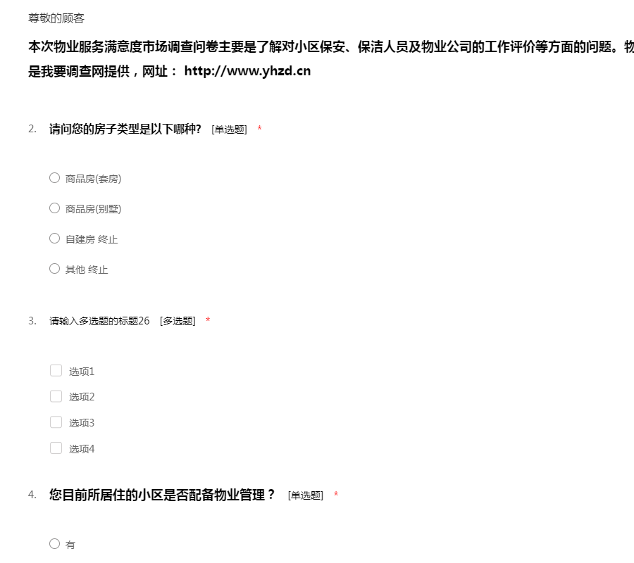 物业服务满意度市场调查问卷模板