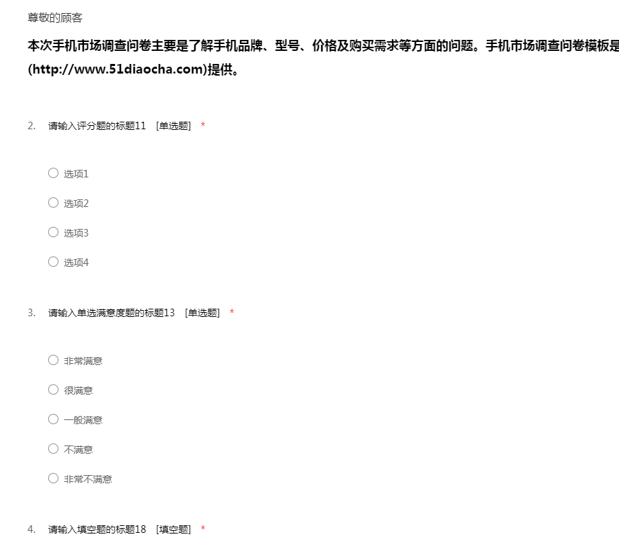 本次手机市场调查问卷主要是了解手机品牌、型号、价格及购买需求等方面的问题。手机市场调查问卷模板是由我要调查网(http://www.51diaocha.com)提供。