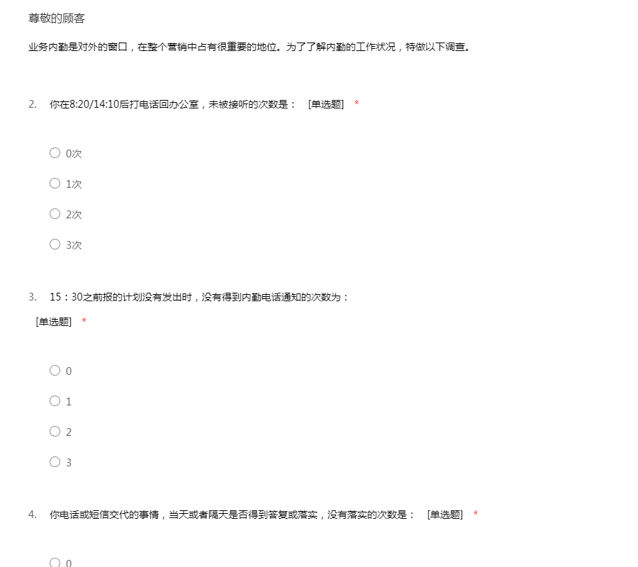业务内勤是对外的窗口,在整个营销中占有很重要的地位。为了了解内勤的工作状况,特做以下调查。