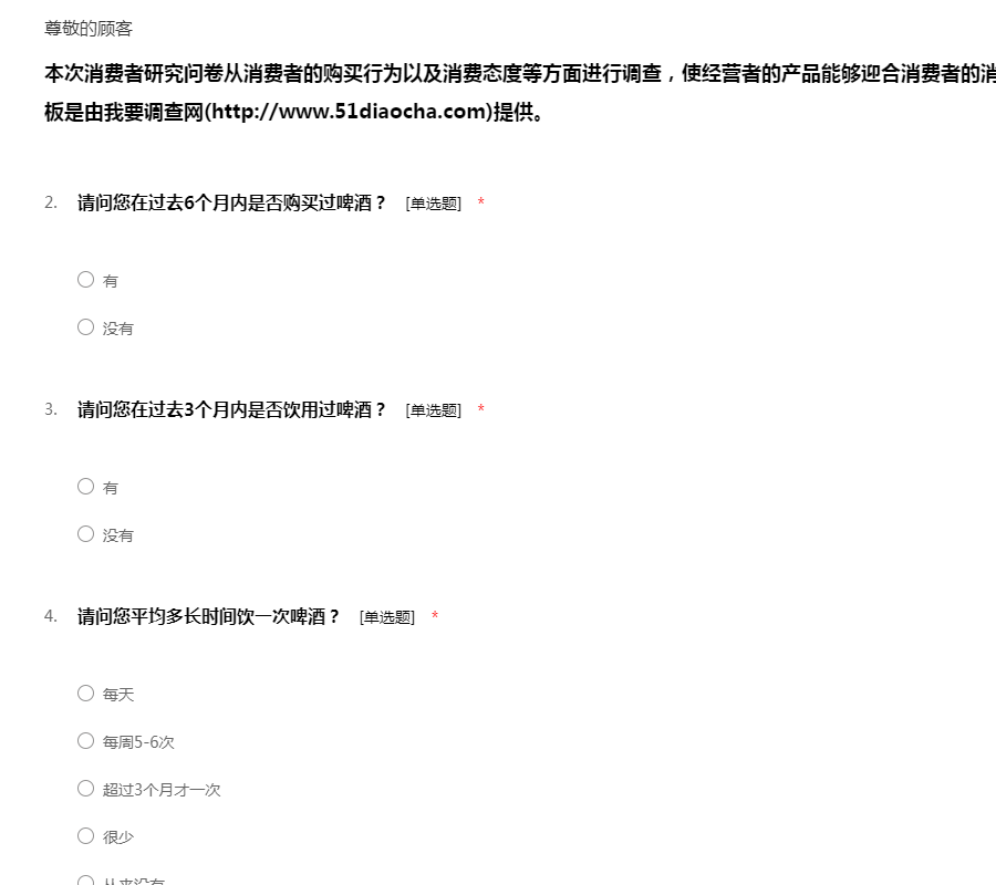 本次消费者研究问卷从消费者的购买行为以及消费态度等方面进行调查,使经营者的产品能够迎合消费者的消费习惯。消费者研究调查问卷模板是由我要调查网(http://www.51diaocha.com)提供。