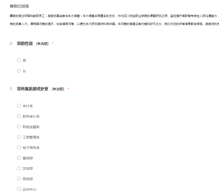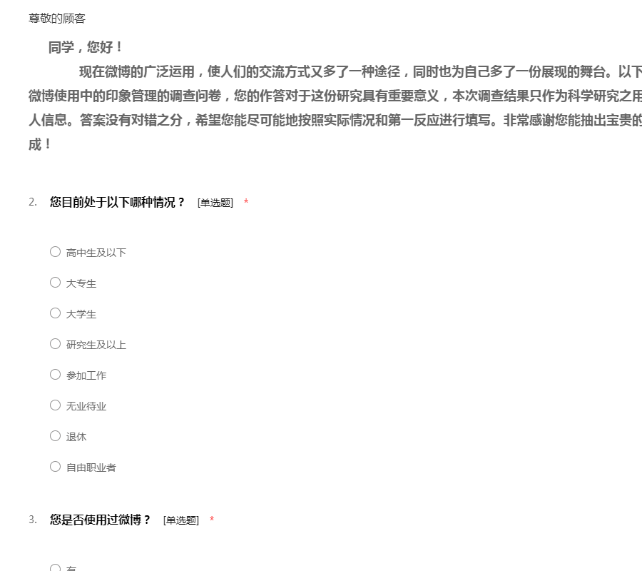 我们正在做一个课题研究,非常感谢您在百忙之中参与本次调查!您的答案对我们非常重要,请务必认真填写,一切调查资料将被严格保密,其调查结果只用做科学研究,请您放心填写。