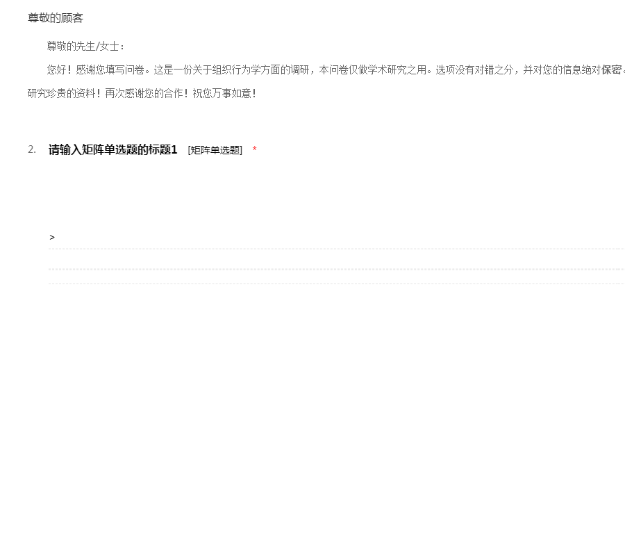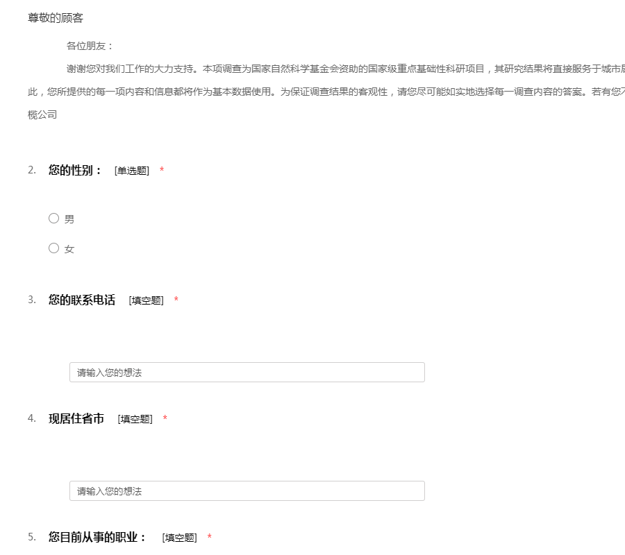 我们正在做一个课题研究,非常感谢您在百忙之中参与本次调查!您的答案对我们非常重要,请务必认真填写,一切调查资料将被严格保密,其调查结果只用做科学研究,请您放心填写。