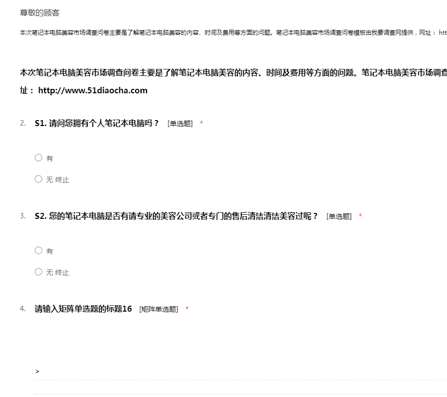 笔记本电脑美容市场调查问卷模板
