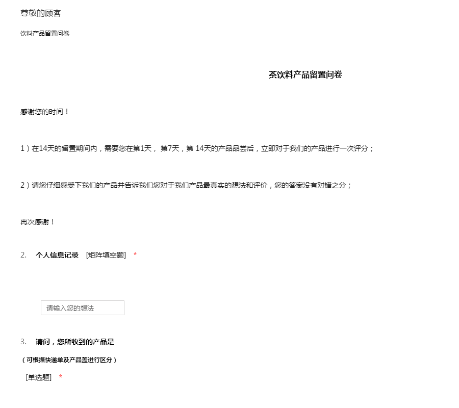 饮料产品留置问卷