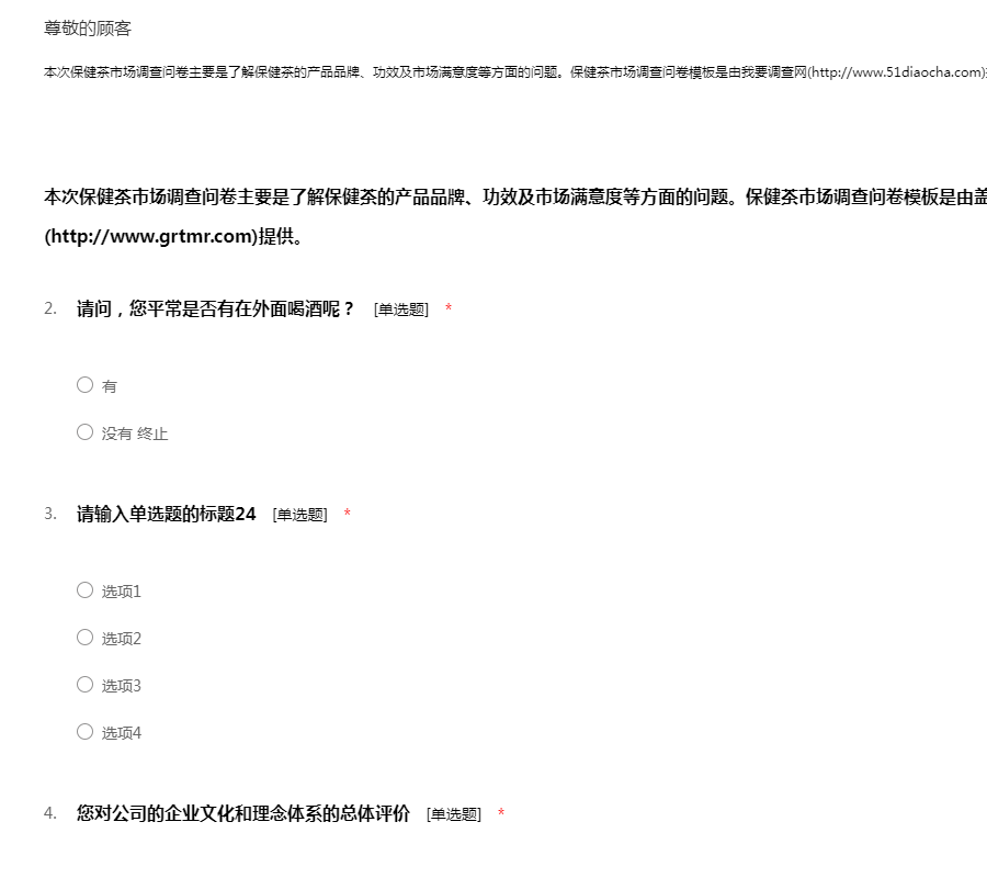 保健茶市场调查问卷模板