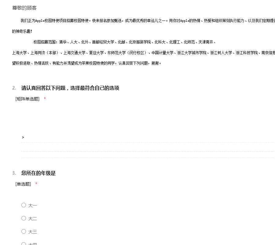望积极进取、热情活跃、有能力并渴望成为苹果校园特使的同学,认真回答下列问题,谢谢。