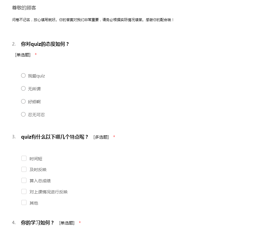 问卷不记名,放心填写就好。你的答案对我们非常重要,请务必根据实际情况填答。感谢你的配合哦!