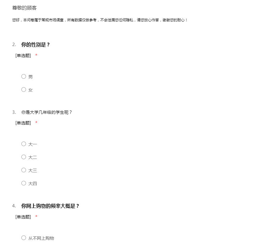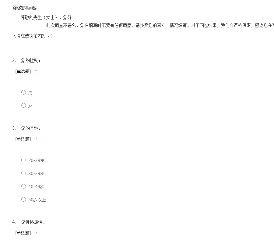 您好,本问卷属于常规市场调查,所有数据仅做参考,不会泄漏您任何隐私,请您放心作答,谢谢您的耐心!