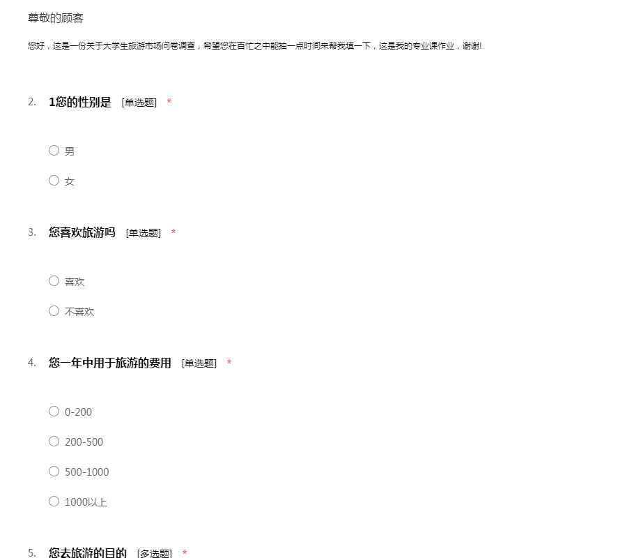 您好,这是一份关于大学生旅游市场问卷调查,希望您在百忙之中能抽一点时间来帮我填一下,这是我的专业课作业,谢谢!