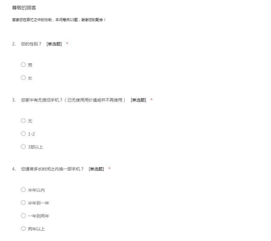 感谢您在百忙之中的协助,本问卷共13题,谢谢您的配合!