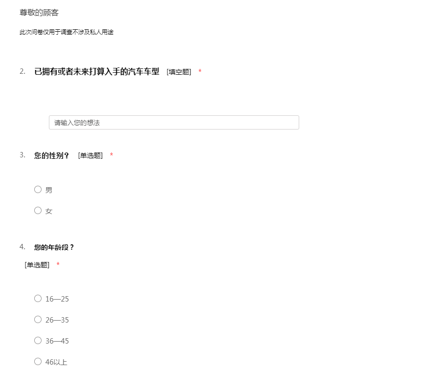 汽车市场调查问卷