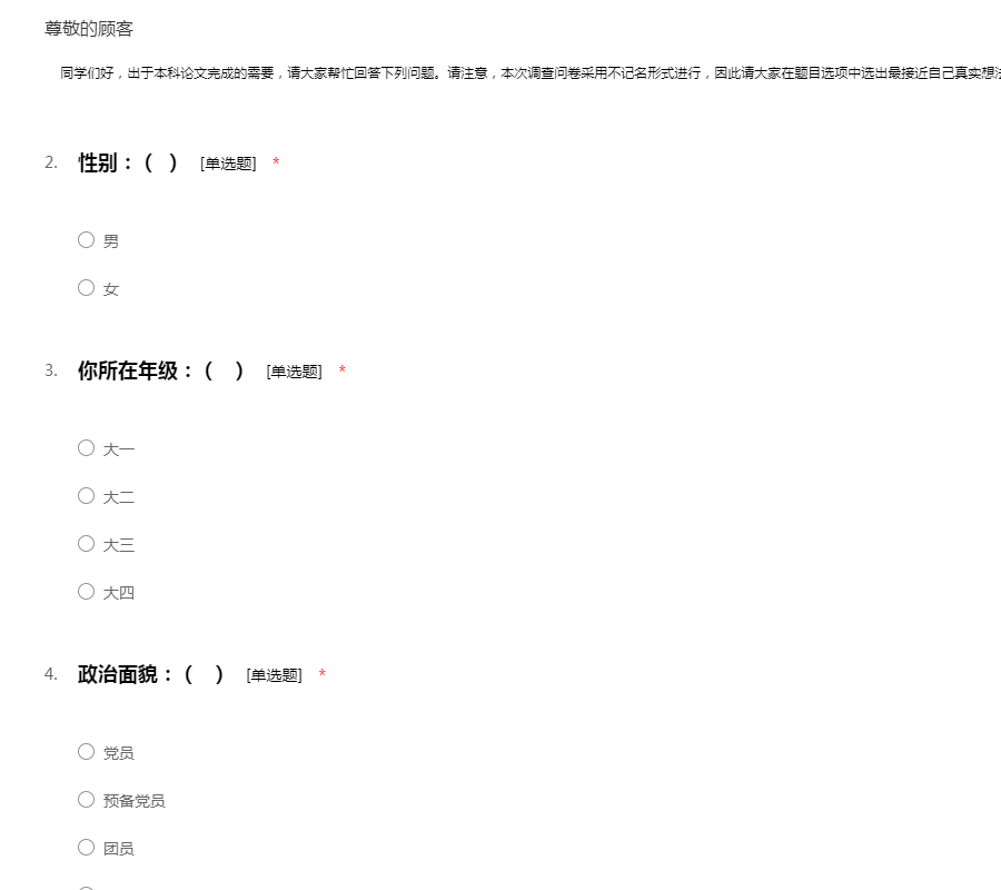 本科毕业论文问卷调查