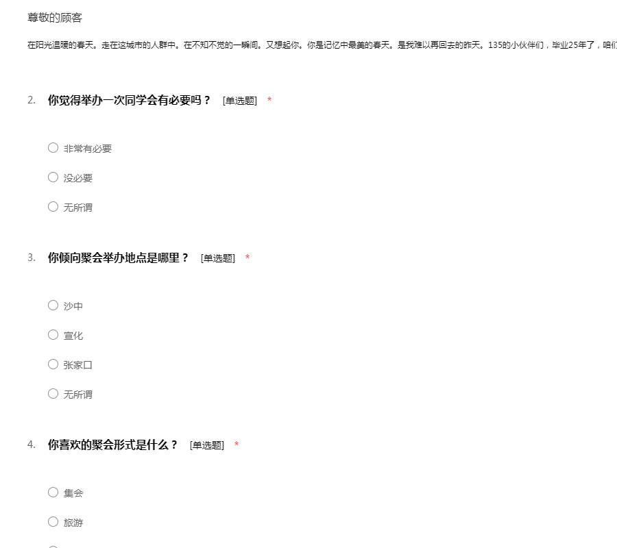 135班毕业25年同学聚会需求调查表