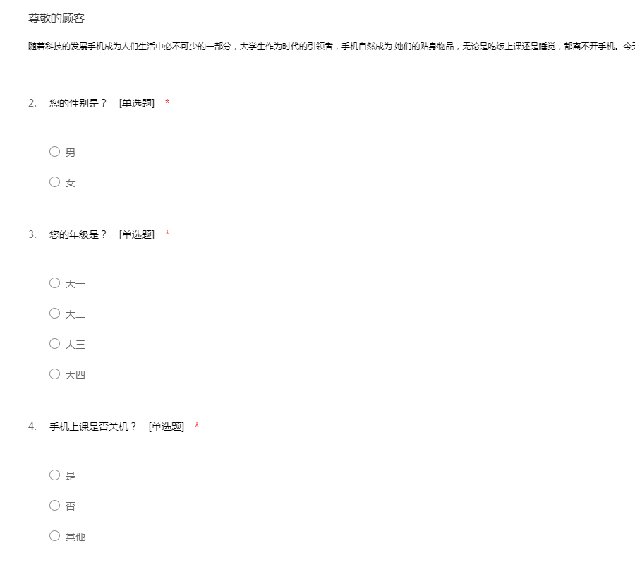 大学生课堂玩手机情况调查问卷