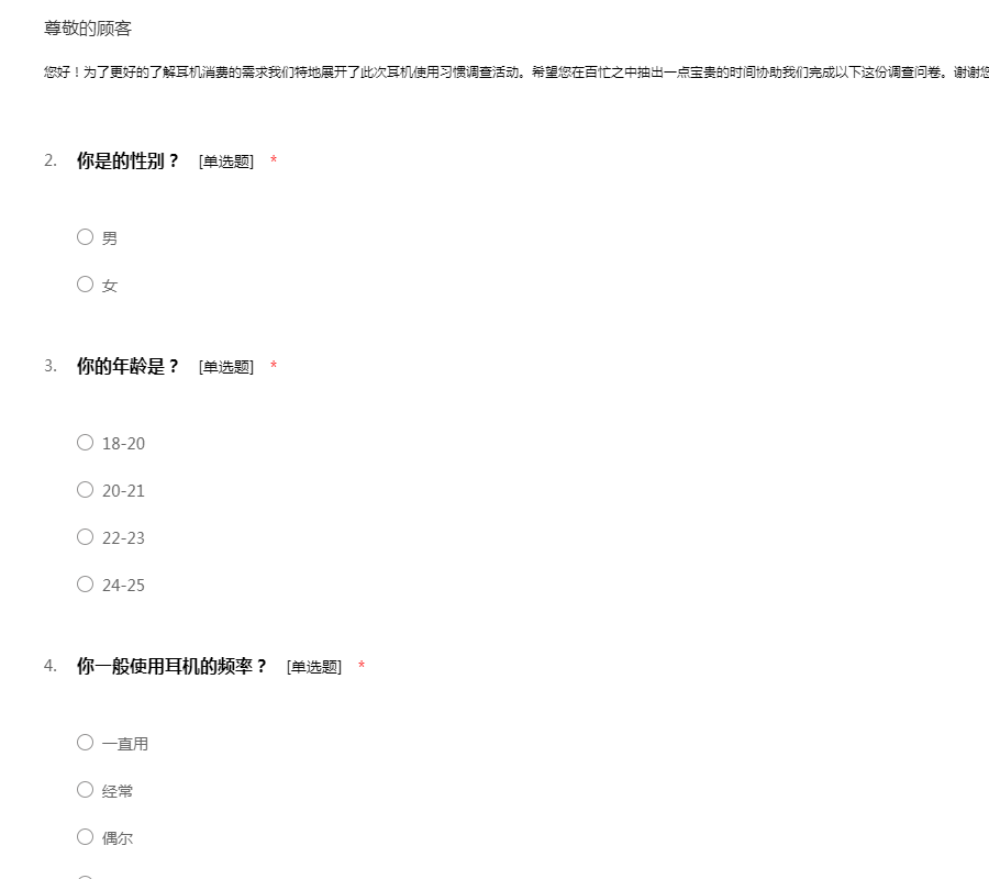 耳机调查问卷