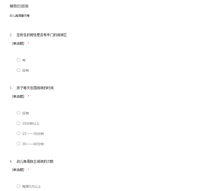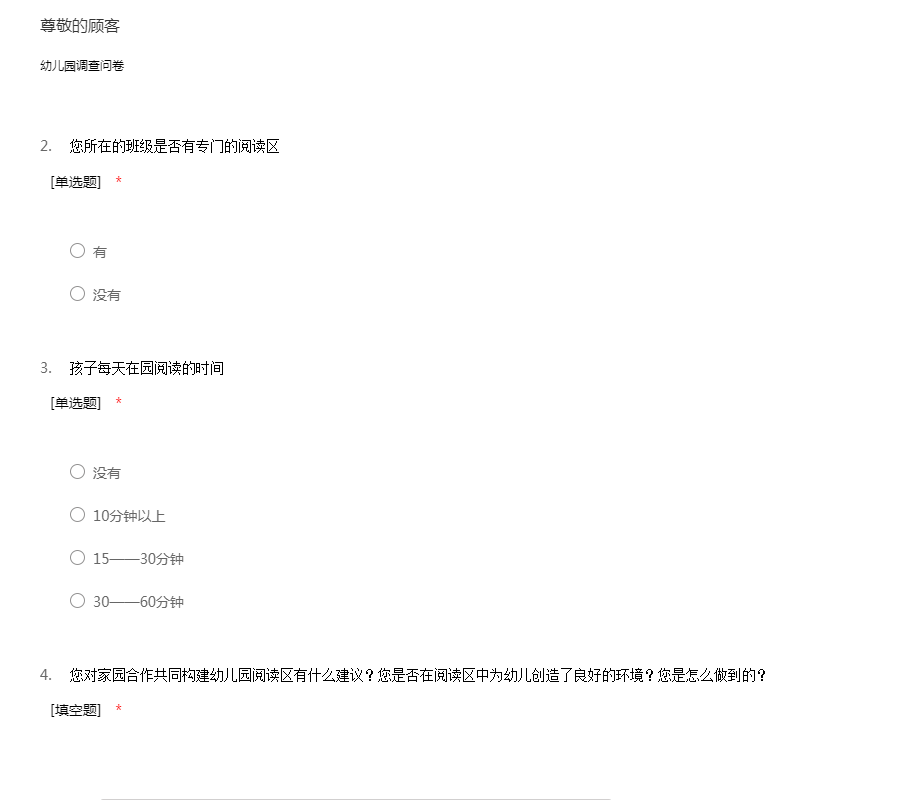幼儿园调查问卷