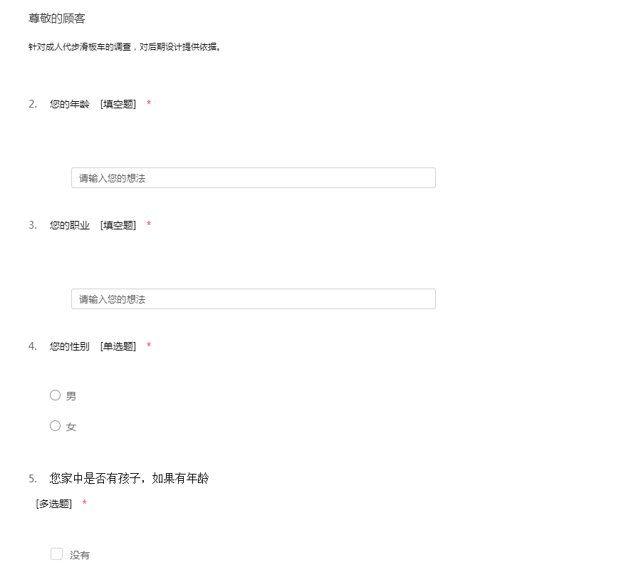 针对成人代步滑板车的调查,对后期设计提供依据。